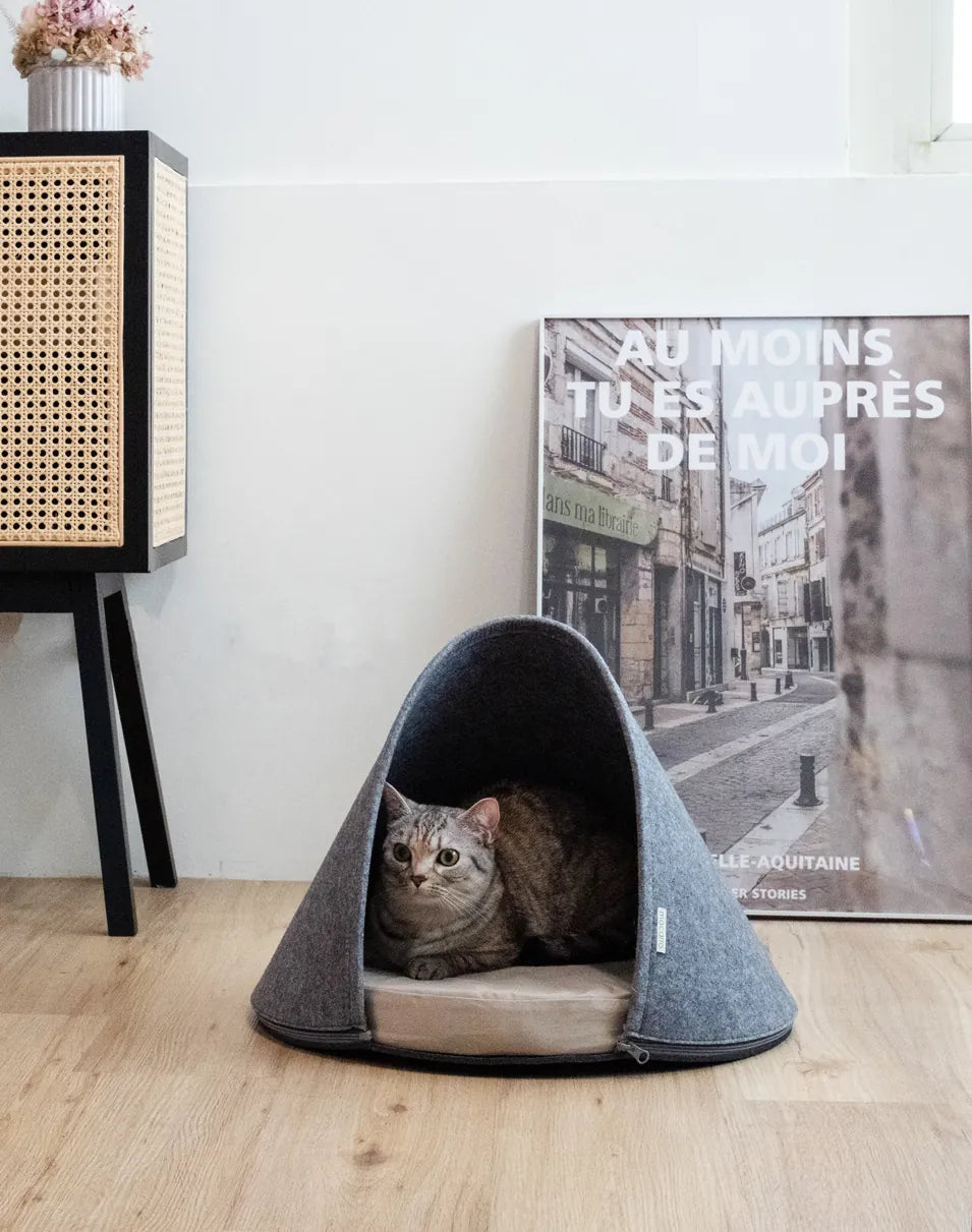 寵物圓弧型睡窩讓毛孩有著安全的穴居感