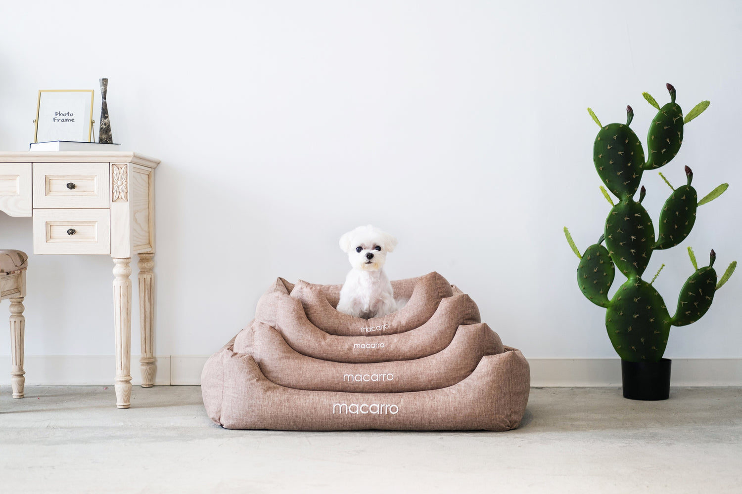 採用強韌棉麻布料,四邊使用優選棉花和聚酯纖維飽滿填充使毛孩頸椎得到足夠支撐