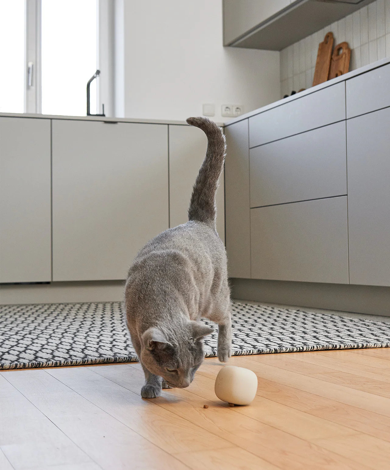 "Rotolo for cats features a smooth, elegant form that lies somewhere between a cube and a ball. A ball rolls, a cube stays put - but when you throw Rotolo, it does something in between." Recent scientific research has highlighted the importance of the sense of touch for human beings. While Rotolo is designed for cats, it will often find its way into the hands of their human companions. The moment you see Rotolo, you’ll want to touch it. Its shape has a certain magic - and that is what great design is all about."